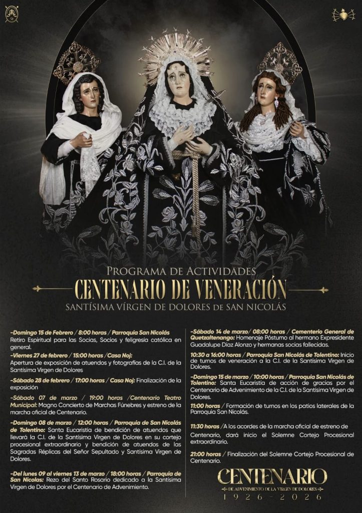 La Junta Directiva y el Comité del Centenario del Advenimiento de la Consagrada Imagen de la Virgen de Dolores de San Nicolás dieron a conocer, por medio de una conferencia de prensa, el programa de actividades conmemorativas por los 100 años de la llegada de esta histórica imagen a la ciudad de Quetzaltenango.